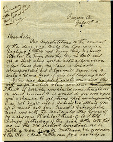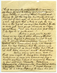 Helen dear we want you do come and stay with us for a while when you come north again I think if possible you should come straight out ?? your arrival & if would do you good & give you a chance to get strong after your confinement, I do not know when Aubrey is getting you up I must ask him. Ernest & Aubrey could meet you with the car I could stay by myself for a day or so. Oh! while I think of it I told Aubrey yesterday of two nice little cots that are in the old Sherlock homestead, one is quite a nice size for Constance & in good order & the other a dear little one for a wee baby, so