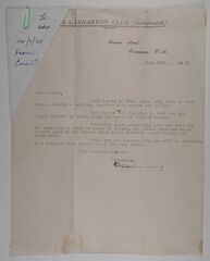 | Title: | 1938-07-26 Eric Cumming (of the Carnarvon Club) to Aubrey Hall |