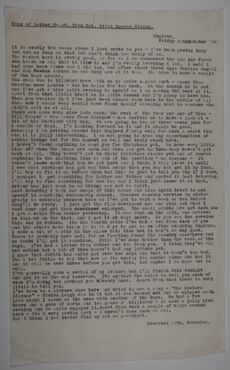 I've generally made a serial of my letters but I'll finish this tonight and get it on the way tomorrow. Its against the rules to tell you much of what I'm doing but perhaps you already know. Apart from that there is very little to tell you.