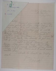I am sending up a cook by Saturdays train. His name is Harry Whitehead. I think I left a new mattress in the room if I did not ask Mr Smith to get one out of the spare room.