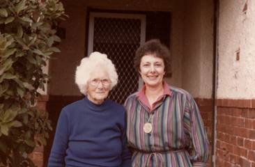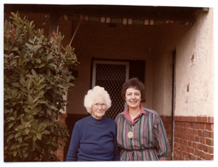 | Description: | Joan Soutter Martin and Judy Hall outside 128 Broome Street, Cottesloe, Western Australia, in the 1908s. |