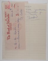 - ↑ Addresses compiled by Judith Hall from addresses on envelopes and letters. Digitized copies to be added here when possible, or at hmw:Harold Aubrey Hall.