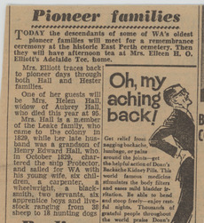 Today the descendants of some of WA's oldest pioneer families will meet for a remembrance ceremony at the historic East Perth cemetery. Then they will have afternoon tea at Mrs. Eileen H.O. Elliott's Adelaide Tce. home.