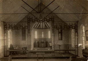 On the chancel screen was dedicated in memory of William Shakespeare Hall by his son Harold Aubrey Hall.[1] It cost £115.[2]